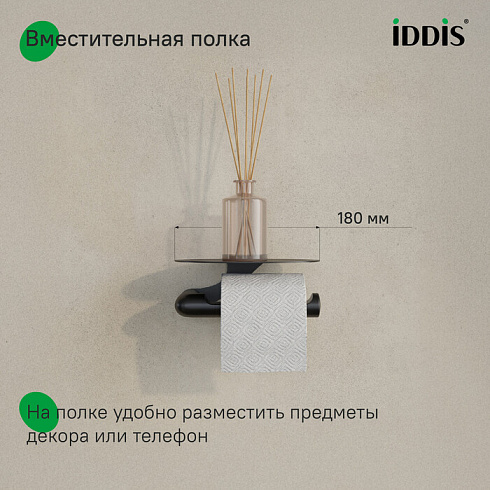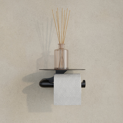 Каждый предмет из новой коллекции NOA минималистичен на вид и максимально функционален, благодаря чему способен выгодно подчеркнуть любой современный или классический дизайн. Коллекция представлена всеми необходимыми аксессуарами для создания единого стиля туалетной или ванной комнаты – с ними ежедневный уход станет еще более комфортным. Настенный держатель трендового черного цвета будет элегантно смотреться в темных интерьерах и мягко балансировать яркие, цветные. Держатель позволяет легко производить замену рулона, удобен в использовании и способен решить сразу несколько задач. Отличительная особенность аксессуара – наличие небольшой овальной полочки, на которой будет удобно разместить освежитель воздуха или телефон.