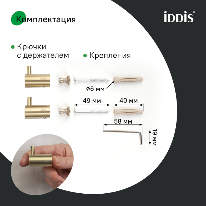 • Комплект крючков IDDIS® прослужит дольше благодаря прочному и стойкому к коррозии сплаву металлов с цветным матовым покрытием.