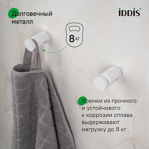 • Комплект крючков IDDIS® прослужит дольше благодаря прочному и стойкому к коррозии сплаву металлов с цветным матовым покрытием.