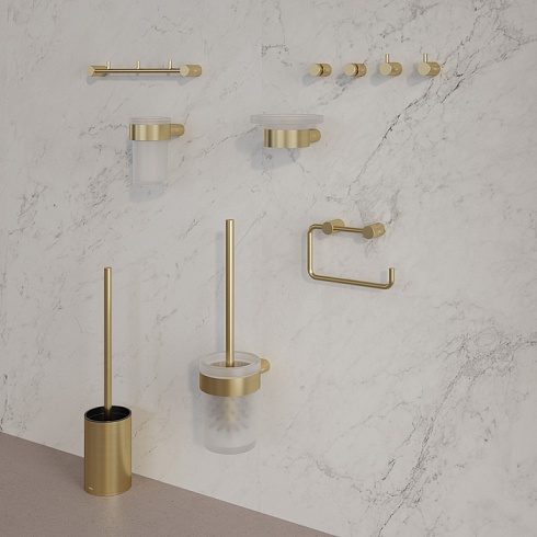 Коллекция функциональных аксессуаров для ванной Petite выделяется минималистичным дизайном и лаконичными формами, что делает ее универсальным украшением пространства любого современного санузла. Каждый предмет коллекции в благородном золотом оттенке способен легко преобразить интерьер, сделать его законченным и ярким. Продуманная линия изгиба держателя для туалетной бумаги предохраняет рулон от соскальзывания, что делает использование этого аксессуара более комфортным и гигиеничным. Держатель Petite станет незаметным и деликатным дополнением в композиции любой туалетной комнаты благодаря отсутствию лишних элементов в его конструкции.