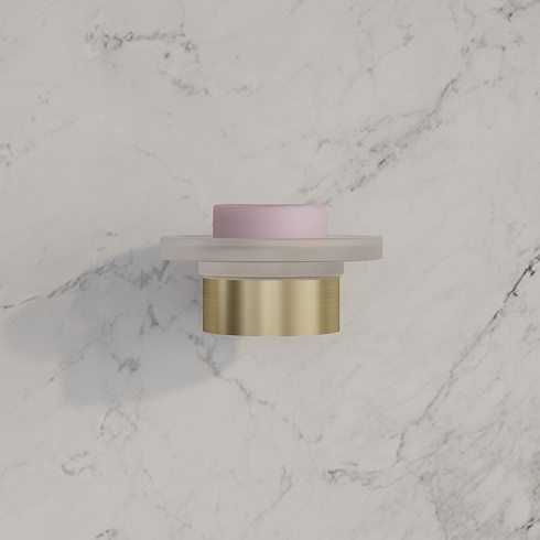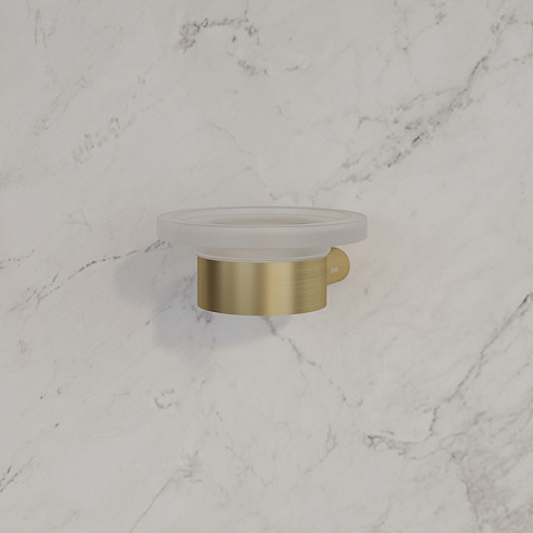Стильная мыльница Petite из матового белого стекла в держателе матового золотого цвета.
