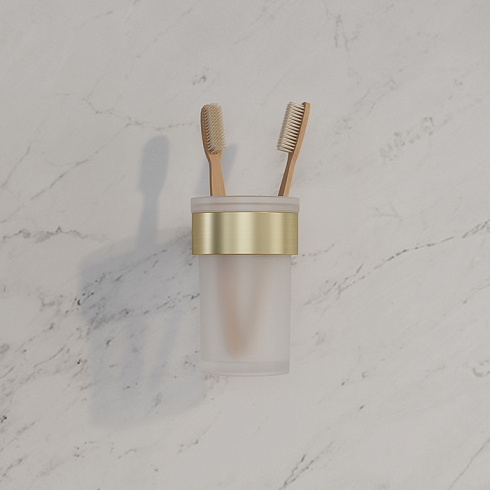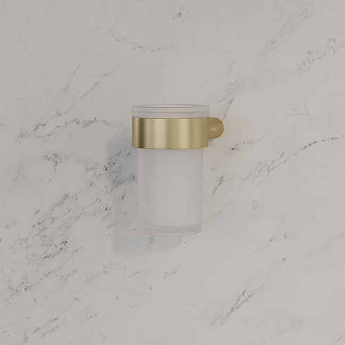Стильный стакан Petite из матового белого стекла в держателе матового золотого цвета.