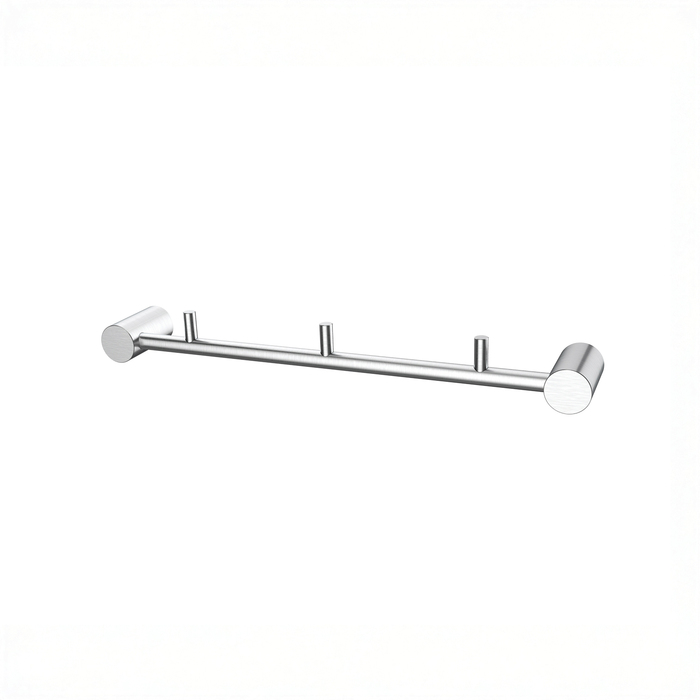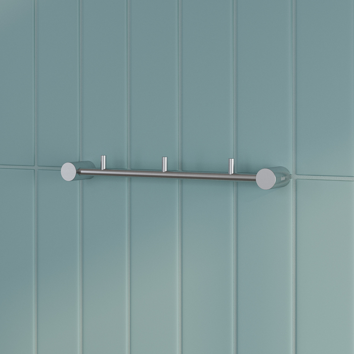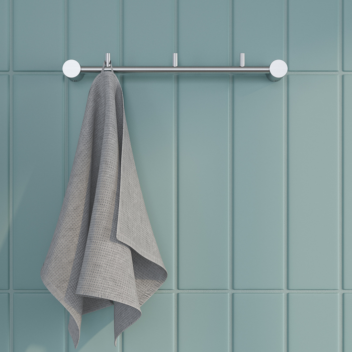 Планка с тремя крючками Petite в цвете матового хрома позволит с комфортом разместить несколько банных полотенец и халатов, дополнив места для хранения в ванной.
