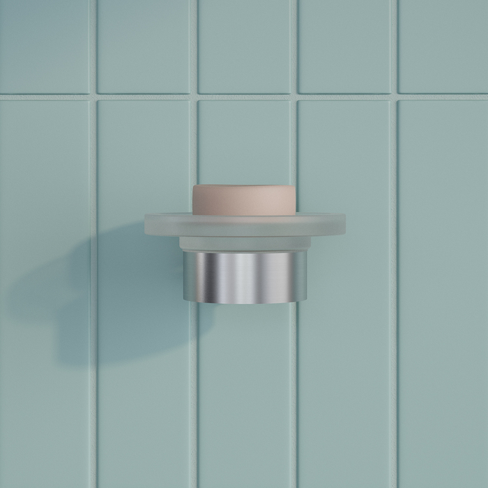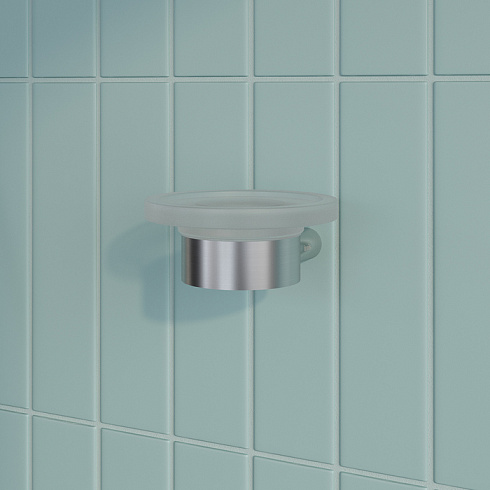 Мыльница из матового стекла легко вынимается из держателя, и её просто промыть.