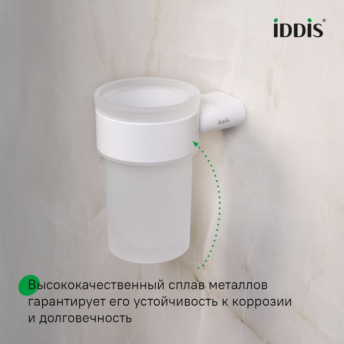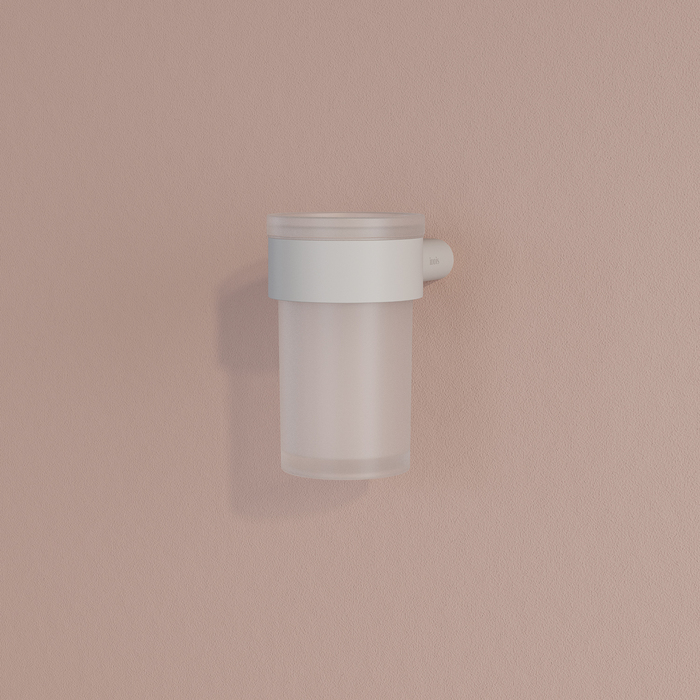 Стильный стакан Petite из матового белого стекла в держателе белого матового цвета.