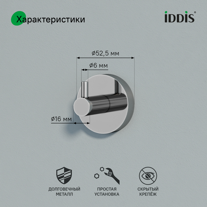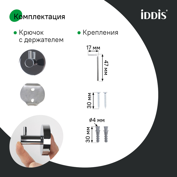 Крючок удобен в установке, монтаж не требует профессиональных навыков. Крепёжные элементы скрыты корпусом, что обеспечивает привлекательный и аккуратный внешний вид. Крепёж выдерживает вес до 5 кг.