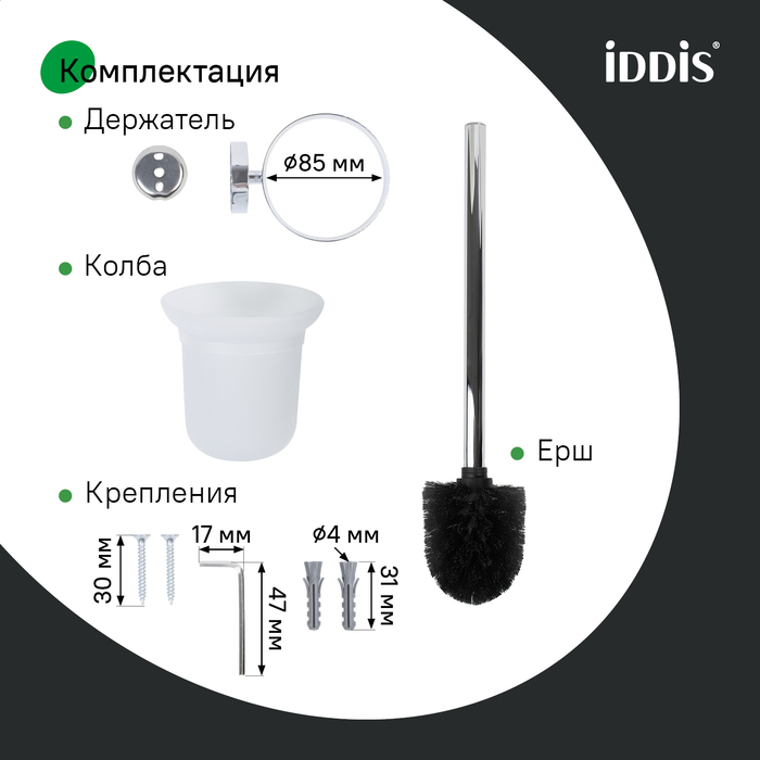 Ёрш удобен в установке, монтаж не требует профессиональных навыков. Крепёжные элементы скрыты корпусом, что обеспечивает привлекательный и аккуратный внешний вид. Крепёж выдерживает вес до 5 кг.