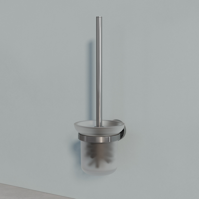 Подвесной ёрш Sena с колбой из матового белого стекла в хромированном держателе – доступное функциональное решение для современной ванной комнаты.