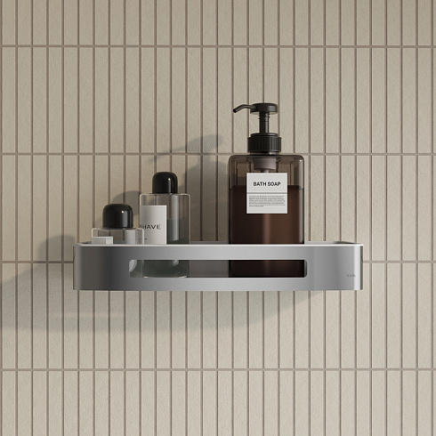 Стальная полка для ванной комнаты размером 300х128 мм вместит все необходимое для комфортного принятия душа. Благодаря универсальному стилю подойдет для любой туалетной комнаты.
