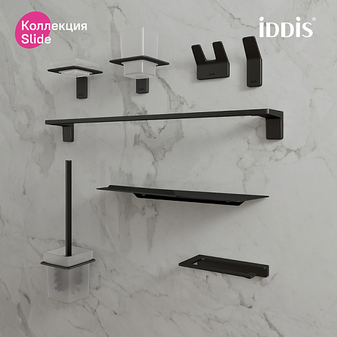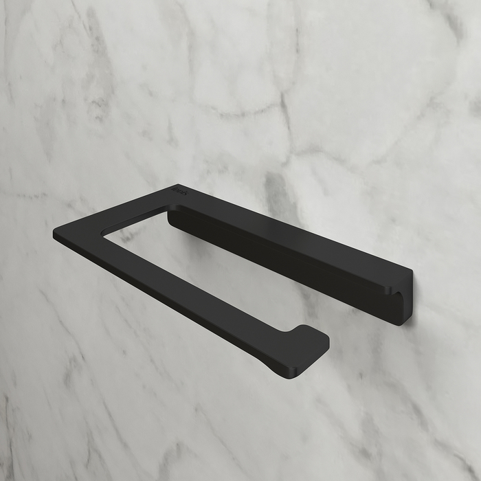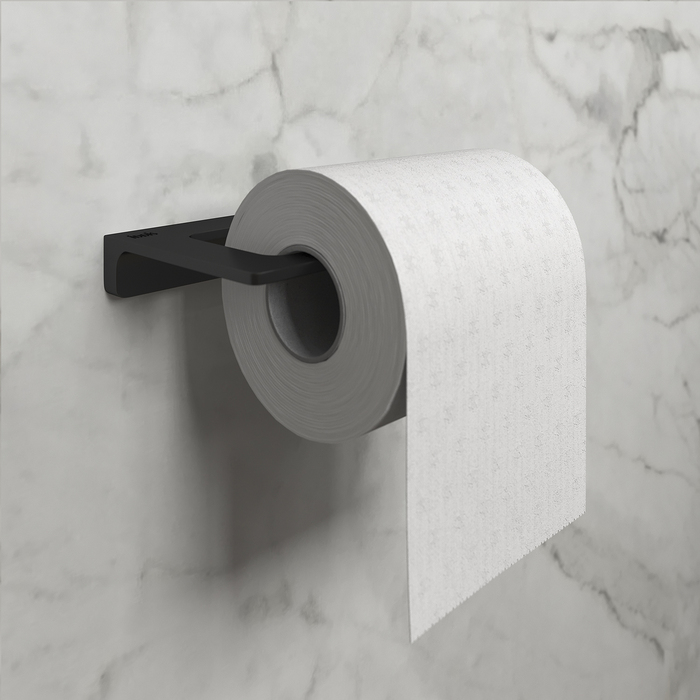 Держатель для туалетной бумаги Slide черного матового цвета. Благодаря прямым линиям и функциональному дизайну подойдет для любой туалетной комнаты.