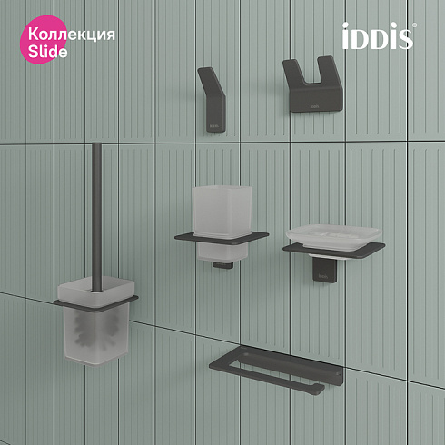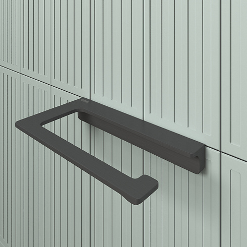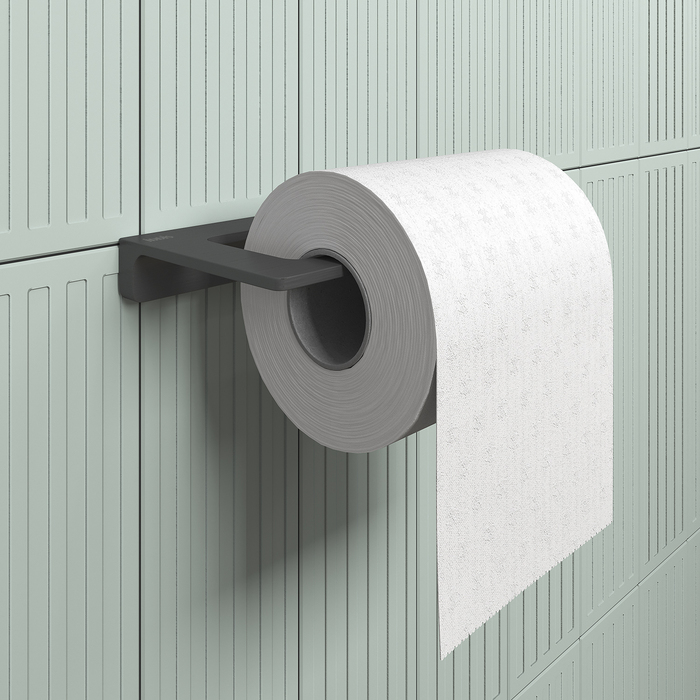 Держатель для туалетной бумаги Slide графитового оттенка. Благодаря прямым линиям и функциональному дизайну подойдет для любой туалетной комнаты.