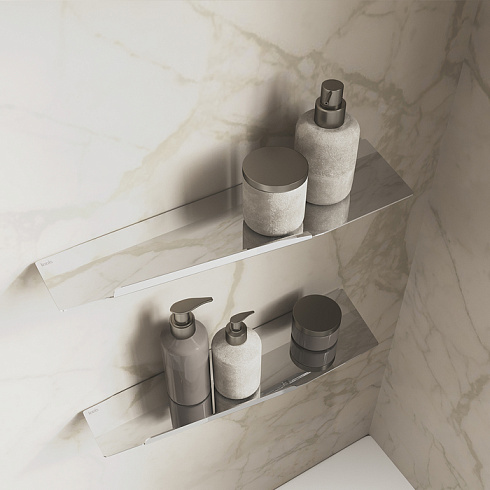 Полка Slide в хроме подходит для использования в разных типах ванной и душевой зоны и станет идеальным решением для практичного хранения ванных принадлежностей.