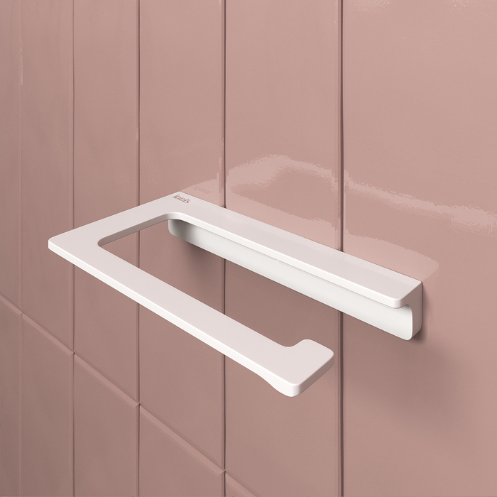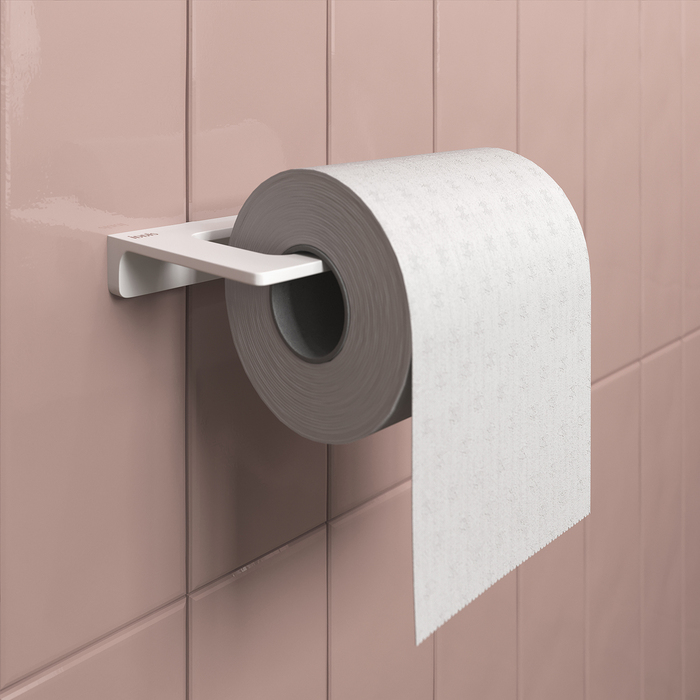 Держатель для туалетной бумаги Slide белого матового цвета. Благодаря прямым линиям и функциональному дизайну подойдет для любой туалетной комнаты.