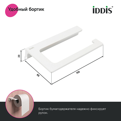 • Бортик надежно удерживает рулон бумаги на держателе.