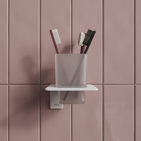 Подстаканник Slide из матового белого стекла в держателе белого матового цвета. Благодаря прямым линиям и функциональному дизайну подойдет для интерьера любой современной ванной.