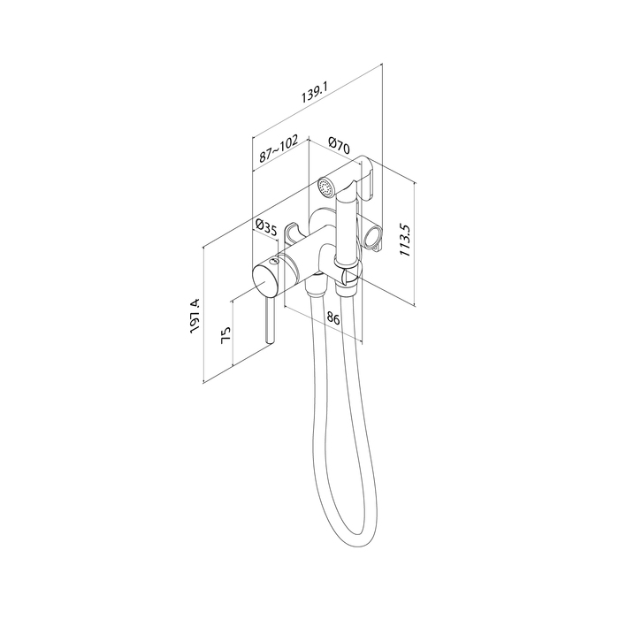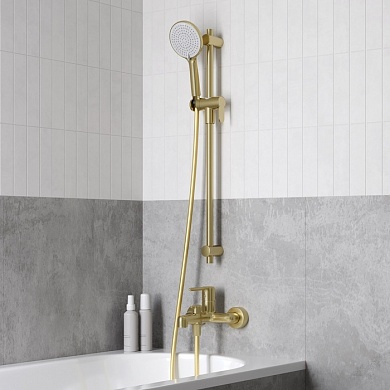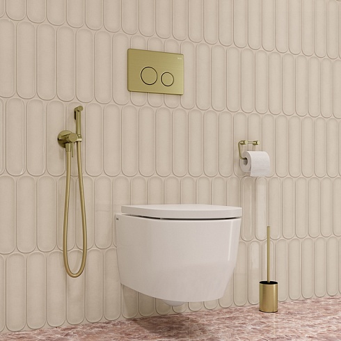 Встраиваемый смеситель с гигиеническим душем Axes в красивом оттенке матового золота – практичный и стильный, его дизайн сочетает в себе трендовый минимализм форм и четкие грани. Имеет крючок для полотенца, который можно установить как слева, так и справа. Гладкий душевой шланг 1,2 м в комплекте.