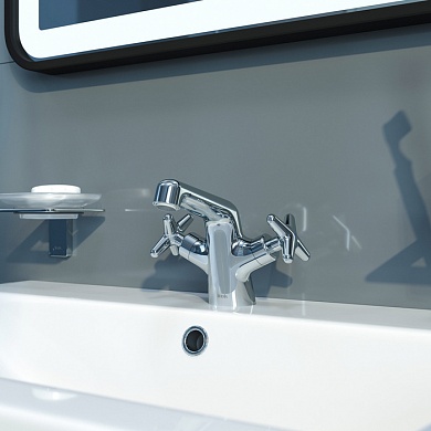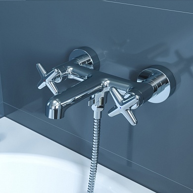 Смеситель для ванны Acros бросает вызов трендам: его ультрасовременный силуэт сочетается с классической двузахватной системой управления. Фигурные ручки — не просто дань традиции, а продуманный эргономичный элемент.