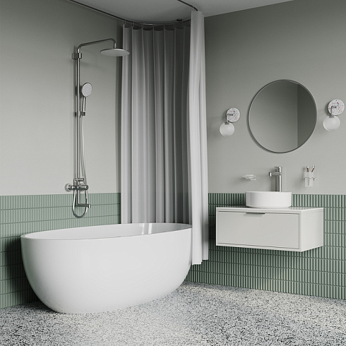 • Керамический картридж обеспечивает точную регулировку температуры и напора воды за счет особенно плавного хода ручки смесителя.