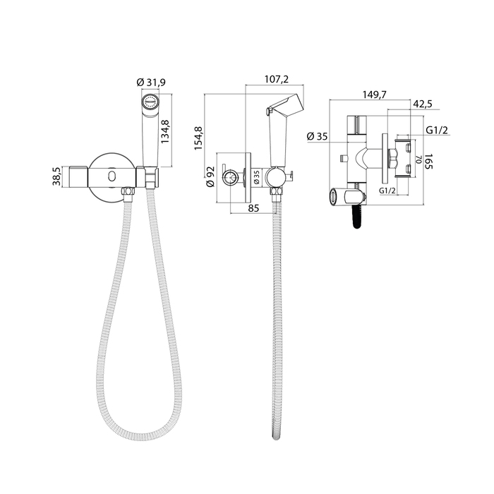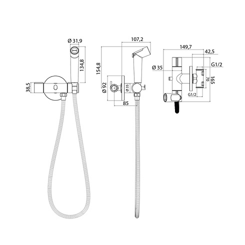 • В комплекте гигиеническая лейка, крючок и шланг 1,5 м в металлической оплетке.