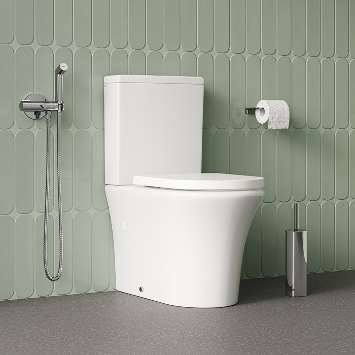 • Компактная лейка приятно лежит в руке и крепится на смесителе, экономя место. Скрытый в стене монтаж поддерживает эстетику интерьера.
