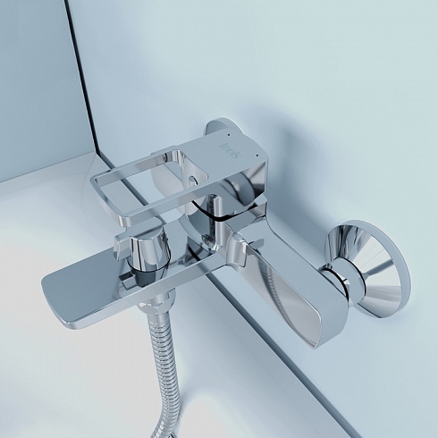 Смеситель для ванны из коллекции Bild отличается четкими геометрическими формами и уникальным дизайном ручки-петли с тонкой изящной рамкой — ее толщина составляет всего 2 мм. Благодаря улучшенной эргономике ручка смесителя удобно ложится в руку, делая управление невероятно комфортным. Без душевых аксессуаров в комплекте.