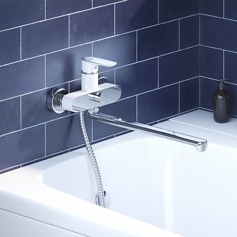 Смеситель для ванны с длинным изливом из коллекции Cloud – воплощение легкости и простоты. Игра двух цветов — белого и хромированного — создает утонченный и стильный продукт, который подойдет к интерьеру в современном и классическом стиле. Продуманные пропорции, наклон излива и положение аэратора гарантируют легкость при использовании смесителя – вода поступает в ванну в оптимальной точке, что делает комфортным и мытье рук, и наполнение больших емкостей. Без душевых аксессуаров в комплекте.