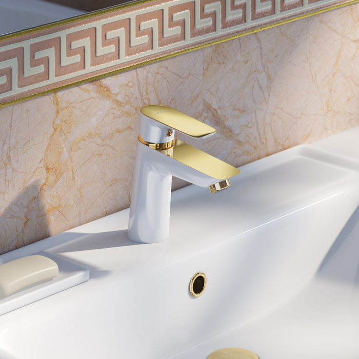 Компактный (148 мм) смеситель для умывальника из коллекции Cloud – скромное очарование функциональной роскоши. Элегантное сочетание белого и золотого цветов создает стильный продукт, который подойдет к интерьеру в современном и классическом стиле. Смеситель удобен для всей семьи — продуманное соотношение высоты и длины излива и угол наклона аэратора позволяют с комфортом размещать руки под смесителем. В комплекте гибкая подводка и крепеж.