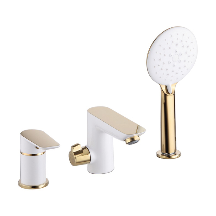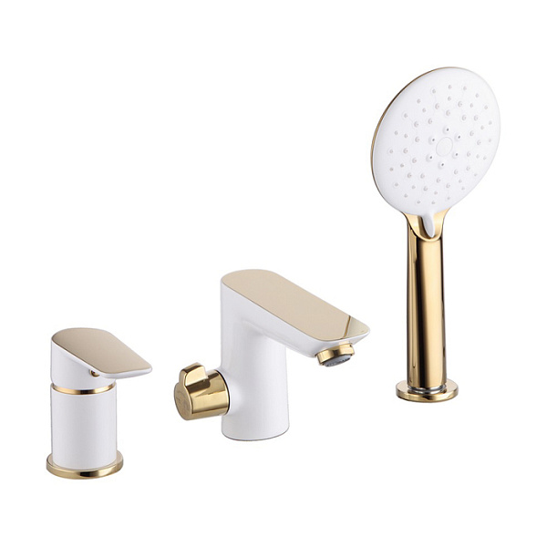 Смеситель на борт ванны из коллекции Cloud – скромное очарование функциональной роскоши. Элегантное сочетание белого и золотого цветов создает стильный продукт, который подойдет к интерьеру в современном и классическом стиле. Монтаж на борт ванны позволяет установить смеситель и его отдельные элементы в наиболее подходящем с точки зрения дизайна месте. В комплекте трехрежимная лейка для душа и шланг из нержавеющей стали длиной 2,0 м с защитой от перекручивания.