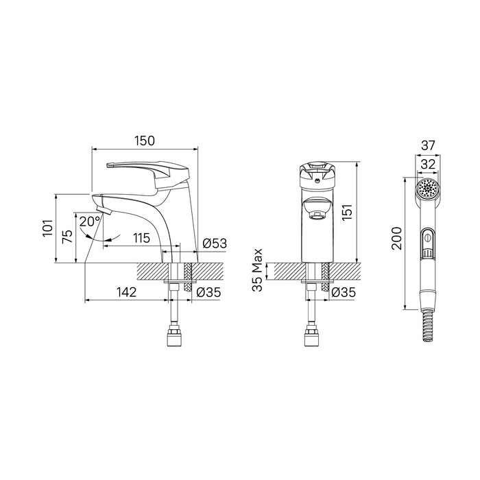 Смеситель для умывальника с гигиеническим душем Carlow Plus