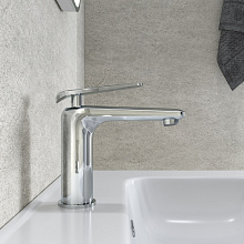 Смеситель для умывальника Dash моментально приковывает взгляд своим монолитным корпусом и оригинальным дизайном. Необычен не только внешний вид, но и ручка управления смесителем – стильная и эргономичная, она удобно ложится в руку, делая управление более комфортным. Смеситель будет органично смотреться в интерьере в стиле минимализм или модерн, его также можно удачно обыграть и в интерьере классической ванной.