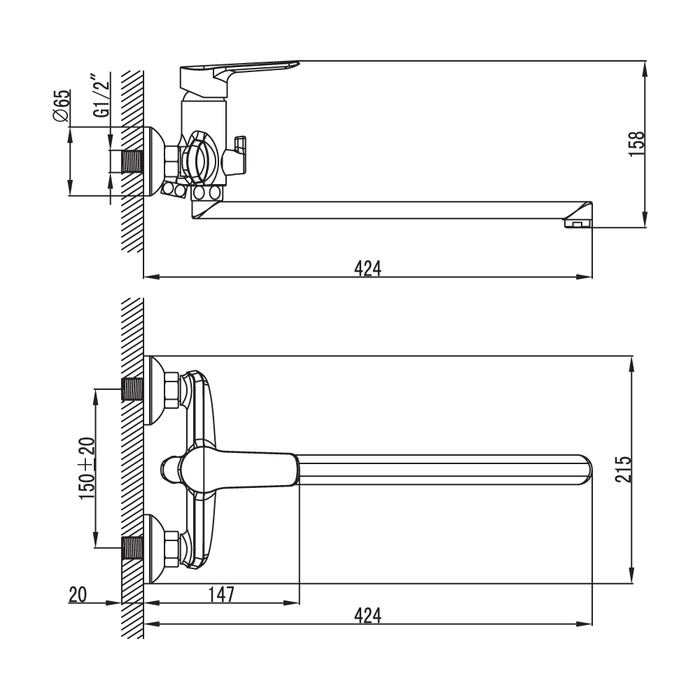 - Длина изделия, мм 424