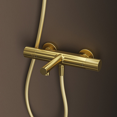Смеситель для ванны с термостатом Duna – воплощение актуальных трендов в дизайне смесителей в безупречном исполнении: фрезеровка, модные цвета и фактуры. Без душевых аксессуаров в комплекте.
