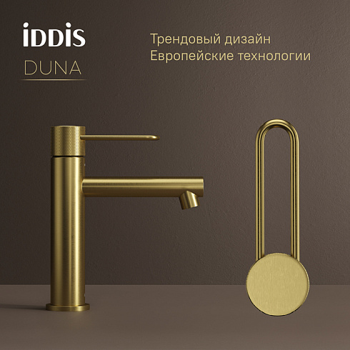 Смеситель для умывальника Duna – воплощение актуальных трендов в дизайне смесителей в безупречном исполнении: фрезеровка, изысканная ручка-петля, модные цвета и фактуры.