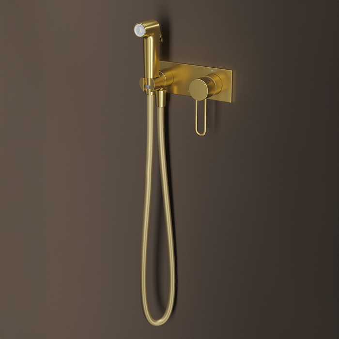 Смеситель с гигиеническим душем Duna – воплощение актуальных трендов в дизайне смесителей в безупречном исполнении: фрезеровка, изысканная ручка-петля, модные цвета и фактуры.