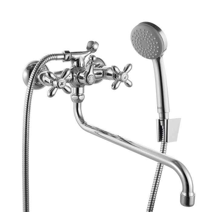 Смеситель для ванны из коллекции Jeals имеет классический дизайн с удобными ручками-барашками и придаст вашей ванной комнате уют и традиционное очарование. В комплект входят 1-режимная лейка и шланг из нержавеющей стали длиной 1,5 м с защитой от перекручивания. Держатель лейки находится на корпусе смесителя.