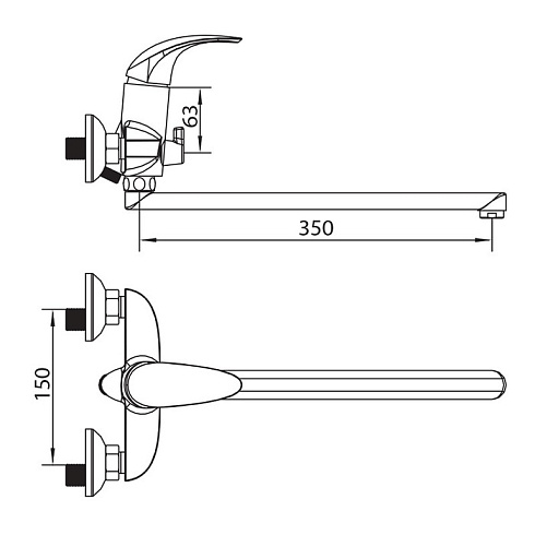 Смеситель для ванны с длинным изливом Leaf