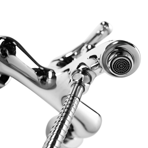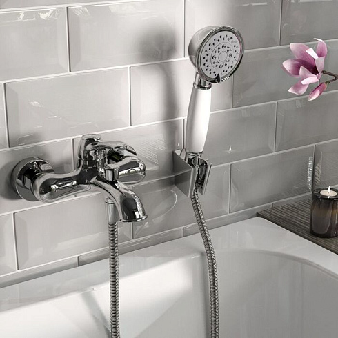 Смеситель для ванны Oldie – превосходное сочетание утонченной формы и современного функционала в ретро стилистике. Со смесителями из коллекции Oldie легко воплотить в жизнь любые дизайнерские идеи –корпус, выполненный в популярном цвете хром, и оригинальные детали белого цвета легко сочетаются с любыми фактурными поверхностями и интерьерными решениями. Продуманные пропорции, наклон излива и положение аэратора позволяют с комфортом размещать руки под смесителем, что делает его удобным для всей семьи. В комплекте душевые аксессуары в тон смесителю — лейка с держателем и гибкий шланг для душа (1,5 м) в оплетке из нержавеющей стали с защитой от перекручивания.