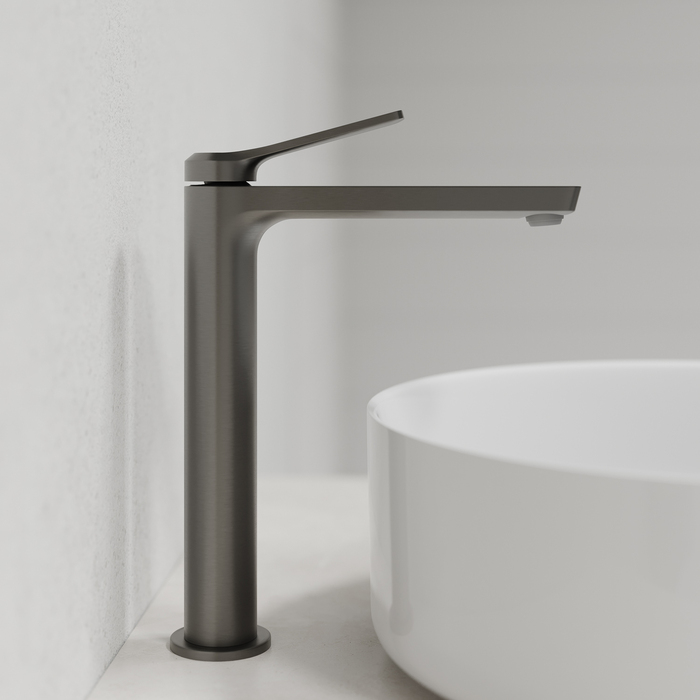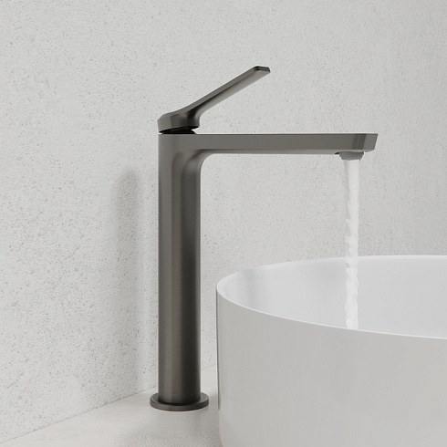 Смеситель Parker в матовом графитовом цвете – практичный и стильный, его дизайн сочетает в себе трендовый минимализм форм и четкие грани. Ручка изящно смотрит вверх под углом, освобождая под собой место для более удобного захвата. Высота 222 мм позволяет с комфортом использовать его с накладными умывальниками.