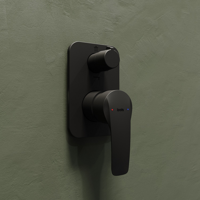Встраиваемый смеситель Ray в трендовом черном цвете – это универсальный дизайн, который выглядит свежо, стильно и подойдет к любому современному интерьеру. Подключается к двум душевым аксессуарам: душевому гарнитуру, верхней или ручной лейке, настенному изливу – выбирайте удобную комбинацию сами. Переключение воды осуществляется керамическим дивертором.