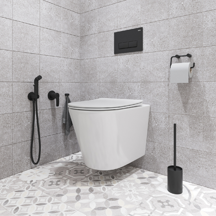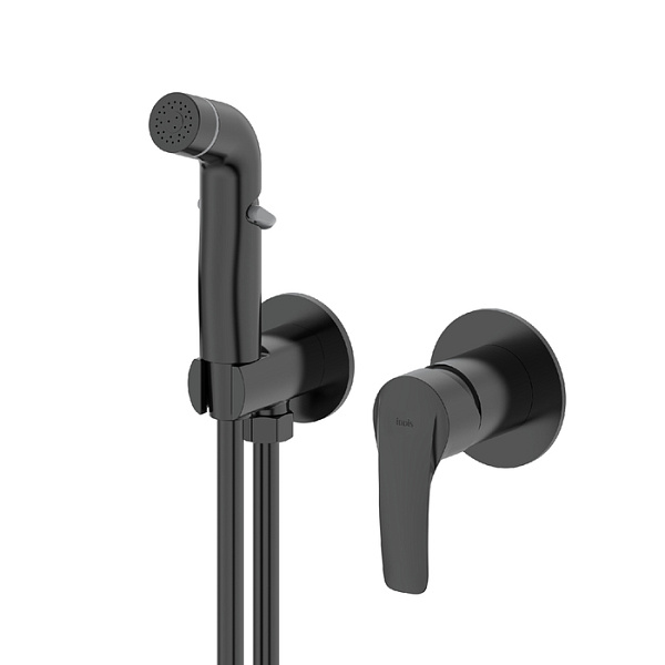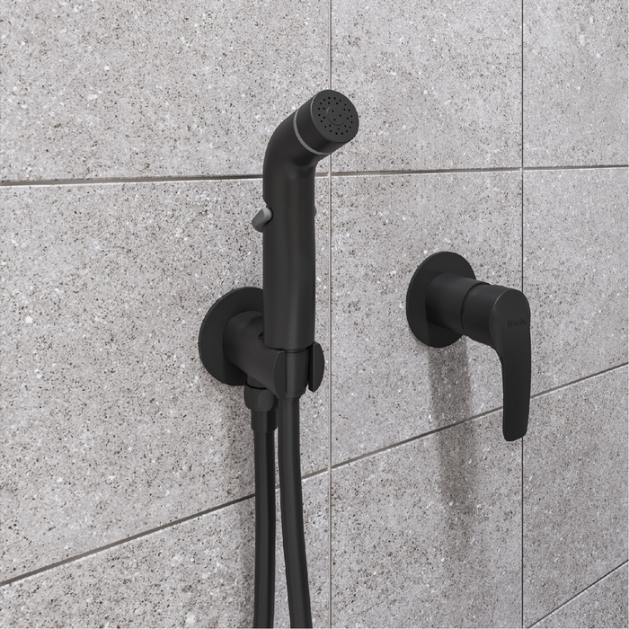 Cмеситель с гигиеническим душем Ray на 2 отверстия в трендовом черном цвете имеет универсальный дизайн и подойдет для различных вариантов интерьерных решений. Тонкий баланс плавных линий и строгой формы изделия позволяет придать ему удивительно гармоничный и завершенный облик. Смеситель скрытого монтажа Ray будет занимать минимум пространства туалетной или ванной комнаты, деликатно служа для решения важных гигиенических задач. В комплекте лейка и душевой шланг из ПВХ (1,2 м).