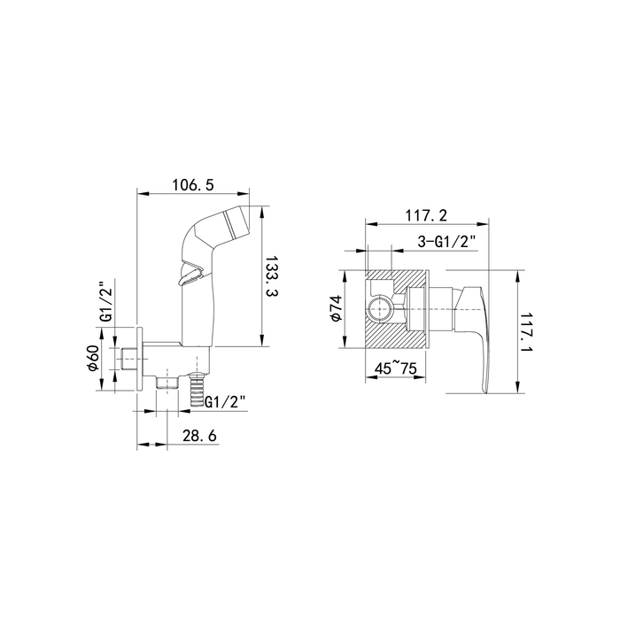 Смеситель скрытого монтажа с гигиеническим душем Ray