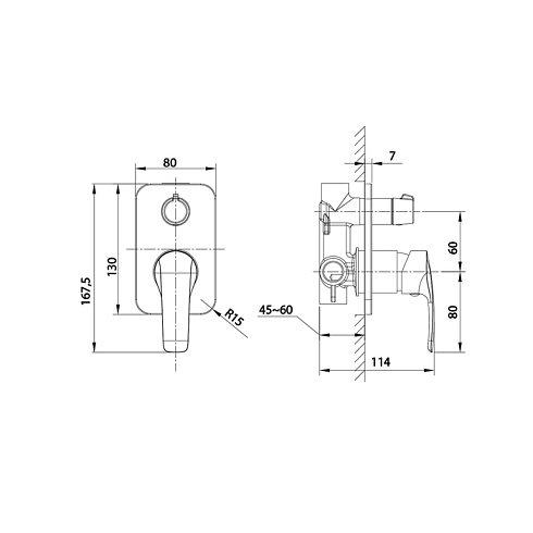 Встраиваемый смеситель Ray – это универсальный дизайн, который выглядит свежо, стильно и подойдет к любому современному интерьеру. Подключается к двум душевым аксессуарам: душевому гарнитуру, верхней или ручной лейке, настенному изливу – выбирайте удобную комбинацию сами. Переключение воды осуществляется керамическим дивертором.
