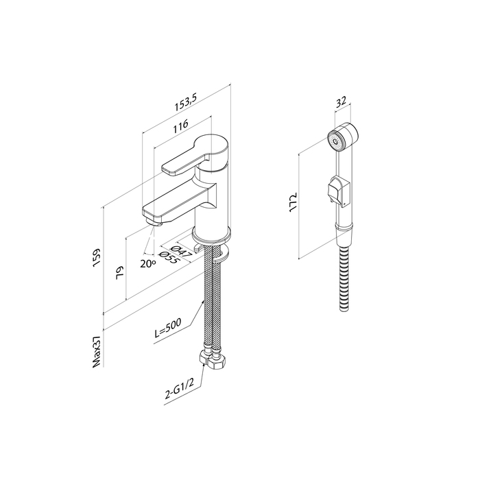 Смеситель для умывальника с гигиеническим душем Sena