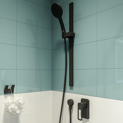 Встраиваемый смеситель Slide стильного матового черного цвета имеет лаконичный дизайн и предназначен для установки в зоне душевого ограждения. Может подключаться к одному душевому аксессуару на выбор (душевому гарнитуру, верхней или ручной лейке). За счет скрытого монтажа и отсутствия выступающих элементов он экономит пространство и прост в уборке. Подключается с помощью любых труб, диаметр входных отверстий ½ дюйма.