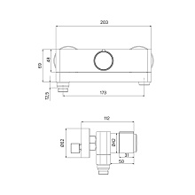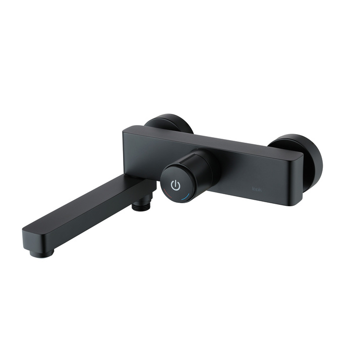 • Ручка включает-выключает смеситель нажатием на кнопку и регулирует температуру при повороте вправо-влево.