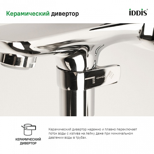 • Смеситель IDDIS® прослужит долго благодаря надежному корпусу из прочной латуни, стойкому к коррозии, резким изменениям давления и перепадам температуры воды.
