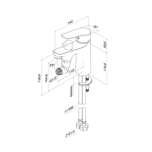 В комплект входят лейка и шланг из нержавеющей стали длиной 1,5 м с защитой от перекручивания.