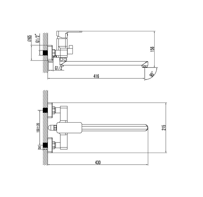 Смеситель для ванны с длинным изливом Urban
