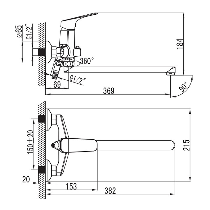 В комплект входят лейка и шланг из нержавеющей стали длиной 1,5 м с защитой от перекручивания.