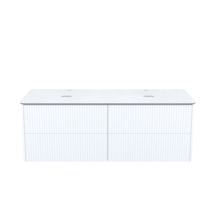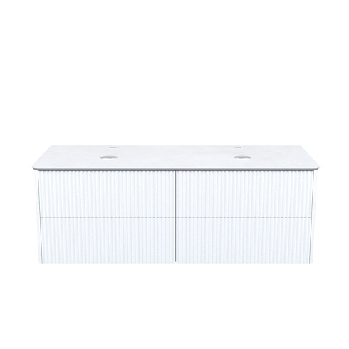 Большая подвесная тумба для ванной комнаты Aiger в классическом белом цвете с выдвижными ящиками и столешницей из керамогранита – красивый лаконичный дизайн вне времени с трендовой вертикальной фрезеровкой.